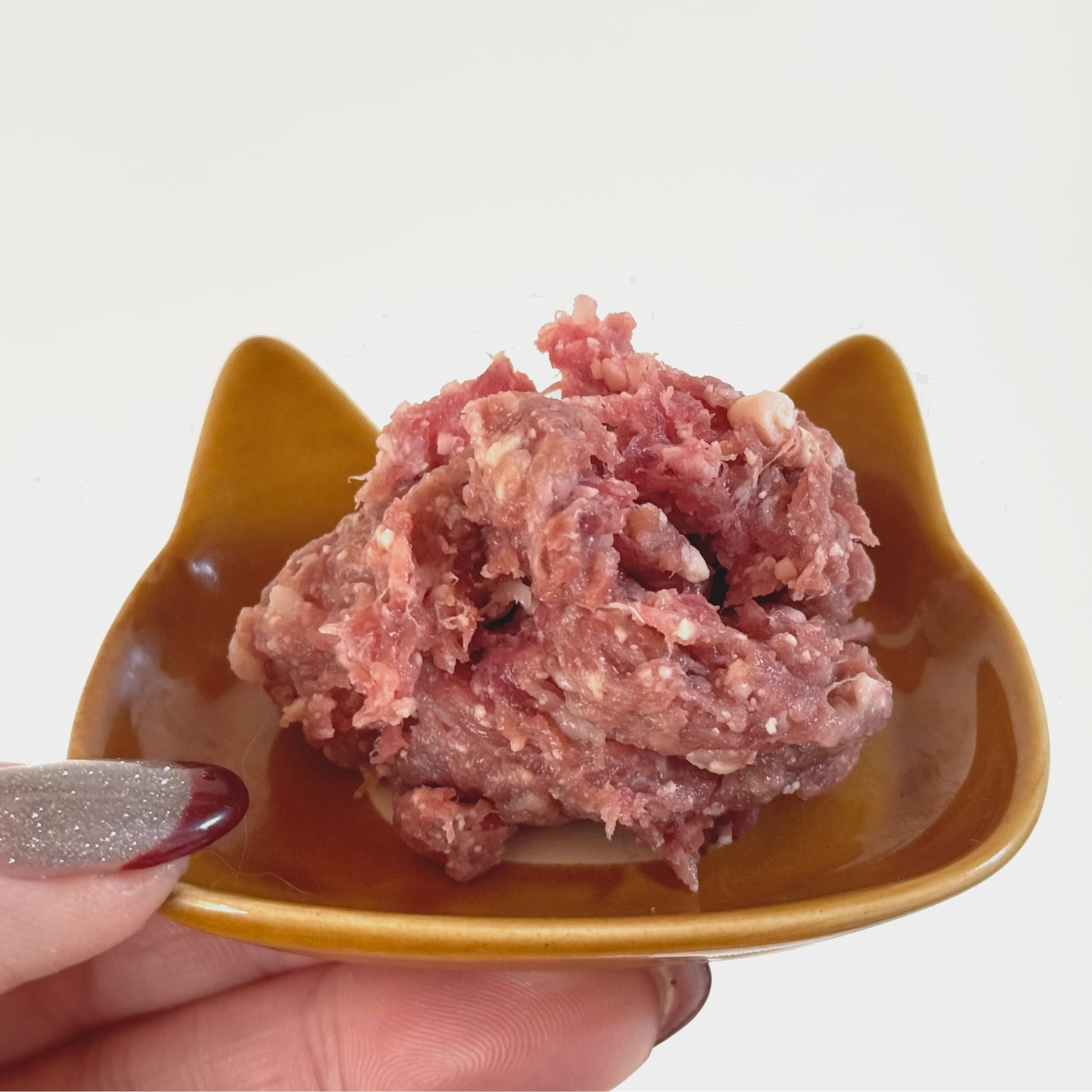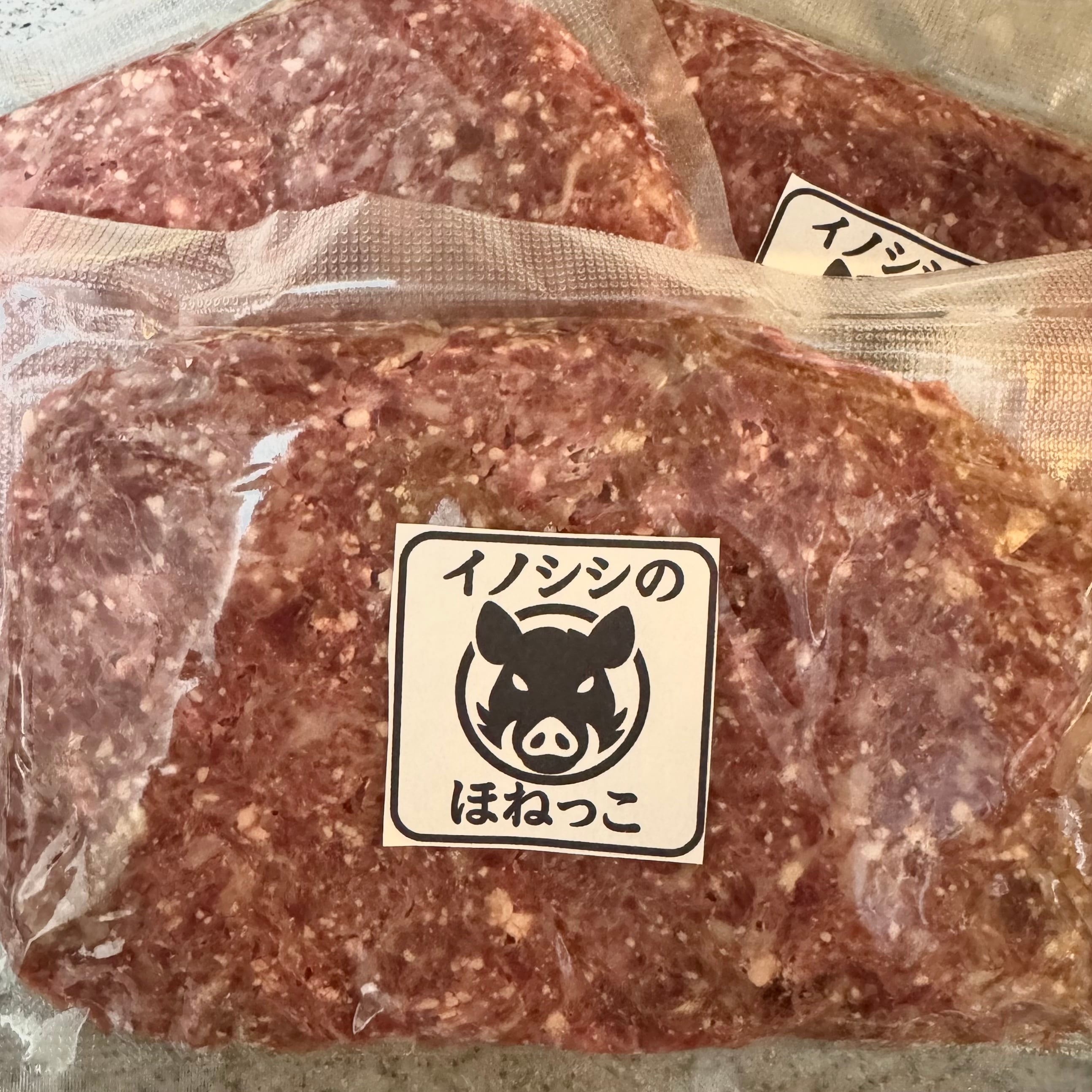 とれたてのジビエに栄養満点の松の粉を混ぜてミンチにしました。